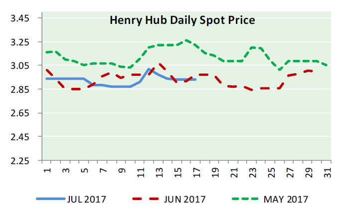 Economic Calendar reports: The latest Energy Information Administration (EIA) natural gas storage data recorded a build of 57 Billion Cubic feet (Bcf) for the week ending July 7th. The increase was below the 72 Bcf recorded last week and slightly below consensus forecasts of a build near 60 Bcf. Prices edged higher after the storage data with gains to just below the $3.00 per mBtu from $2.97 with further selling interest above the $3.00 level. There were further significant increases in stocks in the East and Midwest for the week with other regions showing a small increase as overall demand in the South remained strong.