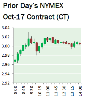 Investing.com reports: U.S. natural gas futures edged higher on Wednesday, recouping some of the prior session’s more than 3% decline as “potentially catastrophic” Hurricane Irma headed for American shores. Another Tropical Storm, Jose, is gathering strength in the Atlantic and may shape up as another hurricane. The weather threats come after Hurricane Harvey caused flooding and devastation in Texas less than two weeks ago, forcing the closure of several refineries and pipelines. Energy traders track tropical weather in the event it disrupts production in the Gulf of Mexico. Early market expectations for this week’s storage data due on Thursday is for a build in a range between 58 and 67 billion cubic feet in the week ended September 1. For more visit investing.com or click http://bit.ly/2eJsrjC