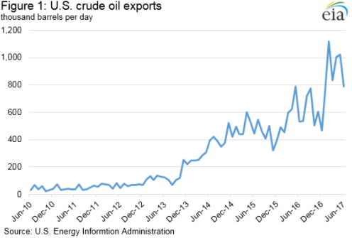 Crude oil and petroleum product exports reach record levels in the first half of 2017