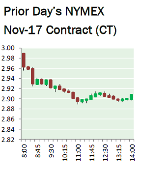 Investing.com reports: U.S. natural gas futures started the week on a downbeat note on Monday, with prices sliding to their lowest level in around three weeks, as traders reacted to the reality that higher demand for the commodity was coming to an end. Warm high pressure will quickly strengthen and expand east of the Plains this week with widespread highs of upper 60 to near 80°F across the northern U.S. and 80’s to locally near 90°F over the southern U.S. Gas futures often reach a seasonal low in October, when mild weather reduces demand, before recovering in the winter, when heating fuel use peaks. For more on visit investing.com or click the following link http://bit.ly/2fKXYG1