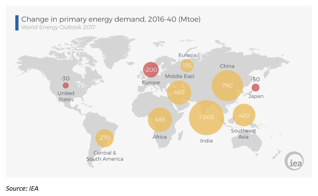 Per the IEA, there are four major trends that will shape energy markets through 2040: