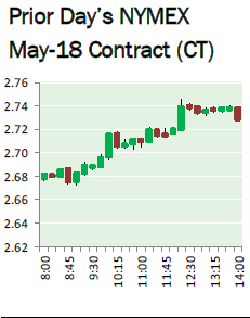 NYMEX May Natural Gas Futures Fall 2.1 Cents to $2.680/MMBtu as Demand Eases