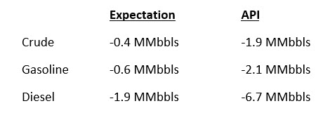 Adding to the overall air of higher prices, the API released their weekly inventory data, which showed huge across-the-board draws for petroleum products. While markets were expecting a draw, the API’s data showed a 2 million barrel draw from crude and gasoline stocks, along with a 6.5 MMbbl draw from diesel stocks. If the EIA confirms these numbers this morning, markets could climb even higher.