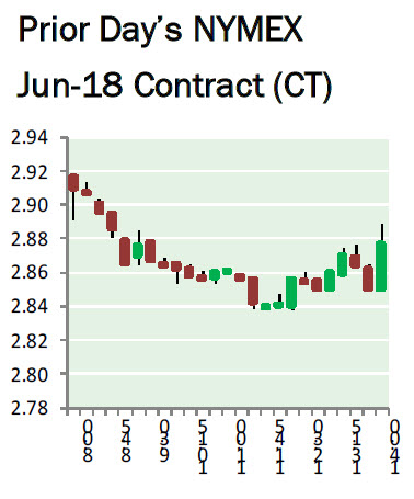 Investing reported: Natural gas futures fell on Tuesday, pulling back from a four-month high as updated forecasting models pointed to milder temperatures covering the eastern part of the United States by the second week of June. That should limit early summer cooling demand for the fuel. Front-month U.S. natural gas futures slumped 6.7 cents, or around 2.3%, to $2.896 per million British thermal units (btu) by 9:14AM ET (1314GMT), after hitting a high of $3.000, the strongest since January 31. Futures did not settle on Monday due to the Memorial Day holiday. Natural gas prices have been boosted in recent weeks by forecasts of building heat across major areas of the U.S. For more on this story visit investing.com or click https://bit.ly/2LHX2gD