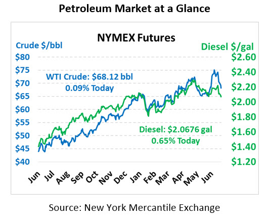 Overall, markets are feeling a little bit safer – and thus less bullish – thanks to a wave of supply returning. OPEC is meeting to discuss their production increase further this week, which could add to that safety net. Until markets begin feeling the pressure of Iran sanctions, which don’t become effective until November, prices could remain somewhat calmer. Of course, Libya, Nigeria and other countries could easily experience an outage that takes us back above $70.