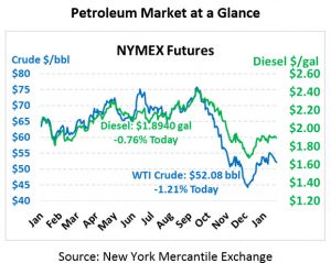 Today brings another sell-off in the petroleum market, as markets put their focus on US-China trade talks and OPEC production. Crude is trading at $52.08, down 64 cents.
