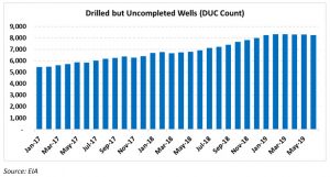 As rig counts have fallen, there has not been a correlated decrease in US oil output, as rig counts are merely a leading indicator of future production. Often, rigs are deployed to drill wells that are not actually brought online until a later date. The inventory of these wells, called DUCs (Drilled but UnCompleted), has risen rapidly since 2017 but has recently plateaued since October as oil prices collapsed. The decrease indicates that American producers are focused more heavily on tapping into existing potential rather than drilling new wells. As investors demand cash flow from producers, those producers are being more careful to focus resources on the strongest areas rather than expanding to newer, more complex fields.