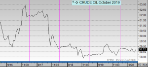 WTI Crude opened the week at $61.48. It fell mid-week but stabilized as the week closed. Crude opened Friday at $58.65, a loss of $2.83 (-4.6%).