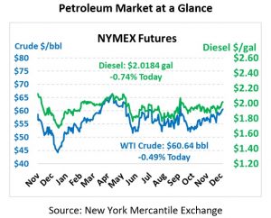 A surprise build reported by the API is driving crude markets lower this morning. WTI Crude is trading at $60.64, a loss of 30 cents.