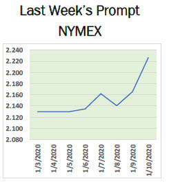 absorb a bearish miss from the latest inventory data Thursday. The February Nymex contract settled 2.5 cents higher at $2.166/MMBtu. March picked up 1.4 cents to $2.148, while April settled at $2.150, up 1.5 cents. Meanwhile, widespread warmth in the near term saw spot prices grind lower for the most part, especially along the East Coast; NGI’s Spot Gas National Avg. tumbled 9.0 cents to $1.945. After inconsistency in recent model runs, the latest guidance Thursday appeared to be honing in on a shift to at least somewhat colder temperatures later this month, according to Bespoke Weather Services. For more on this story visit naturalgasintel. com or click https://bit.ly/2uDSYKr