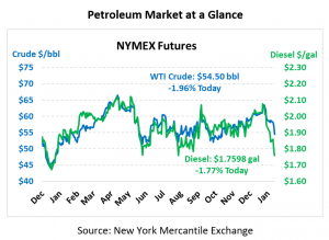 On Thursday, crude prices continued the downward trend we had seen through the week based upon the news of the possible spread of the coronavirus.  The virus has prompted the suspension of public transportation in 10 Chinese cities.  Health authorities fear the infection could spread as millions of Chinese travel over the Lunar New Years holiday this weekend.