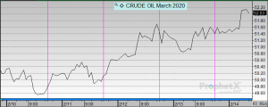 WTI Crude opened the week at $50.12.  It generally followed a steady trajectory up through the week.  Crude opened Friday at $51.51, a gain of $1.39 (2.8%).