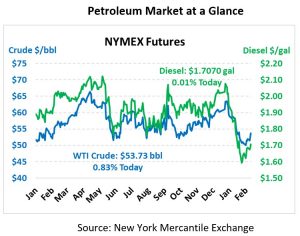 Crude prices are up this morning. WTI Crude is trading at $53.73, a gain of 44 cents.