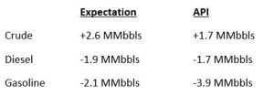 The API reported a smaller-than-expected build for crude of 1.7 MMbbls versus an expected build of 2.6 MMbbls.  At Cushing, stocks fell with a draw of 1.4 MMbbls.  The API reported distillates had a smaller-than-expected draw and gasoline had a larger-than-expected draw.  The EIA will report numbers later this morning.