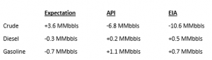 The EIA reported a surprise decrease for crude of 10.6 MMbbls, versus an expected increase of 3.6 MMbbls. The large draw can be attributed to several factors. Refinery utilization was up with gross inputs above 15 MMbpd for the first time since March 27. Increased demand for products soaked up much of the increased output as the product builds last week were modest. Finally, a sharp decline in imports to the Gulf Coast by about 565 Kbpd helped to shift the flow of crude inventories.