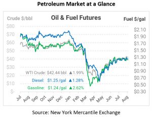 Crude prices are up this morning. WTI Crude is trading at $42.44, a gain of 83 cents.