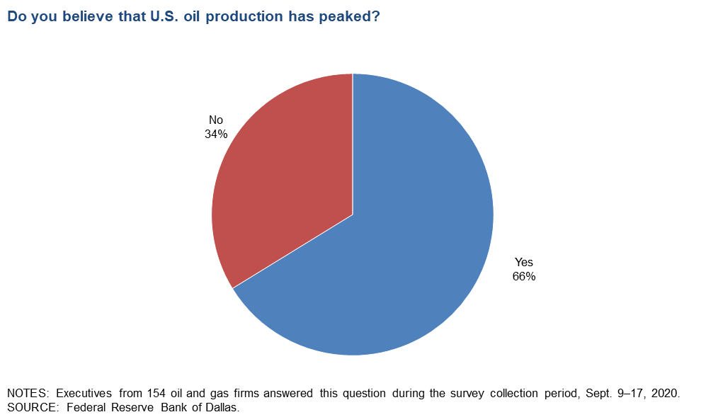 Last week, the Dallas Federal Reserve published its quarterly survey of energy companies, which showed mixed optimism and pessimism for the future of US oil. The report asked oil and gas explorers and producers about their outlook for the future. Most oil and gas E&Ps (44%) expect oil to end the year in the $40-45 range, with an additional 44% expecting prices to end the year even higher than that. With oil fundamentals rebalancing, the outlook for WTI crude seems to be improving significantly. On the other hand, rising prices won’t be enough to revive the suffering shale industry. Two-thirds of those surveyed believed that US oil production peaked in early 2020 at 13 MMbpd – meaning America’s most productive years may be in the past.