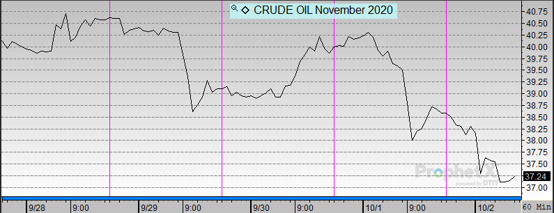 Markets are down to close the week on news of President Trump’s positive COVID-19 test result. The president has begun quarantine already, but equities and commodities markets in the US and Europe are falling on the news.