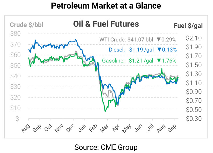 Fuel markets are taking a break this morning after a week of rallies sent WTI crude above $41/bbl yesterday. This morning, WTI crude is trading at $41.07, down 12 cents from Thursday’s close.