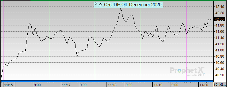 WTI crude finished the week higher, starting up on Monday with news of another effective vaccine lifting the market throughout the week. This new vaccine by Moderna reported 95% efficacy rates and a more manageable storage temperature.