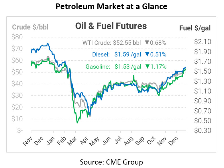 Crude prices are down this morning. WTI Crude is trading at $52.55, a loss of 36 cents.
