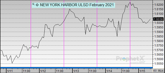 Diesel opened the week at $1.5855. It followed crude throughout the week to close the week higher. Diesel opened Friday at $1.6201, a gain of 3.5 cents (2.2%).