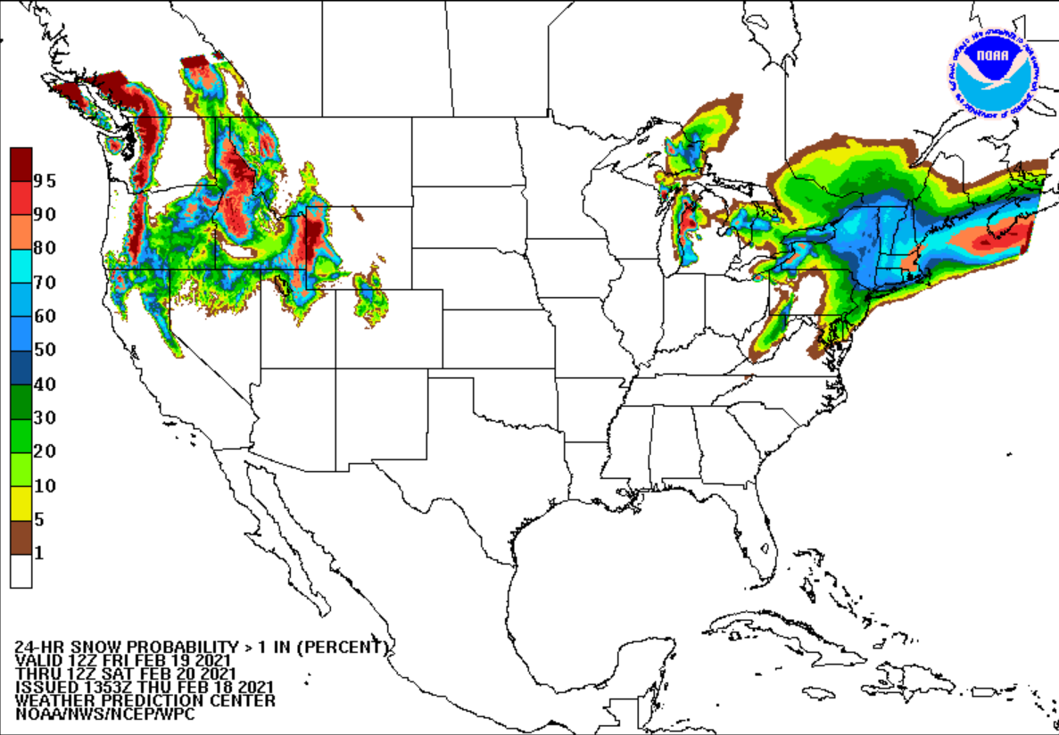 NOAA estimates that nearly three-quarters of the continental US is covered in snow – the most since 2003. Winter Storms Uri and Viola each contributed to the coverage in the South, while more predictable winter precipitation added snow in the Pacific Northwest, Rockies, and Great Plains.