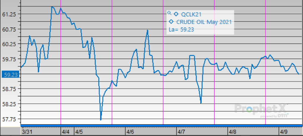 Crude prices began the week with a steep selloff caused by OPEC+ increasing output. Opening on Monday at $61.50, prices fell $3/bbl. But after that, prices stabilized around $59/bbl. This morning, crude opened that $59.76, a loss of $1.74 (2.8%).
