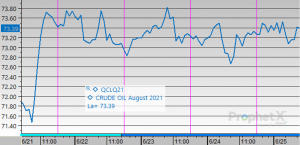 Today crude opened at a price of $73.32, a change of $1.80 from Monday’s opening price of $71.52. Throughout the week crude rose steadily every day as this morning’s opening price was the highest in a multi-year period. Wednesday’s mid-day high of $74.25 also posted the highest price for crude in a multi-year period.