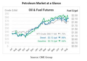 Following a long holiday weekend, fuel markets are opening this morning with moderate losses. Repair efforts continue in Louisiana and Mississippi – nearly half a million remain without power, and 84% of offshore crude oil production is offline. For refiners, a bit over half of the 2 million barrels per day taken offline by the storm is being restored, though refinery restarts can extend for weeks.
