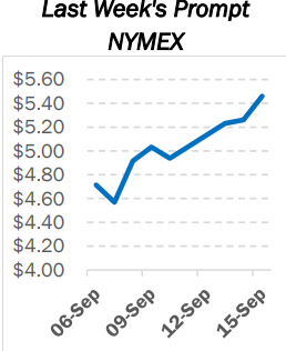 surrounded the energy markets, as natural gas prices rose 6% on the day [Sept. 13] racing past $5 up to $5.23/MMBtu to close the day,”