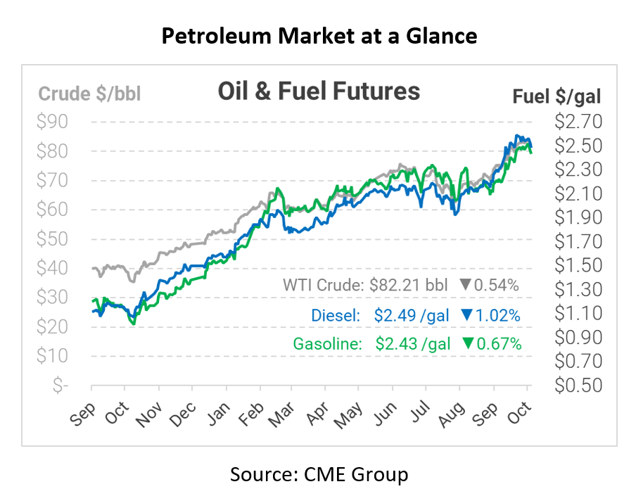 Today oil hit a two-week low, a change of pace from the bullish increase oil has seen over the past few weeks. Lower prices this morning come as a result of the fresh negotiations between Iran and major economies regarding nuclear sanctions. Crude opened the morning at $82.25, diesel at $2.5093, and gasoline at $2.4480.