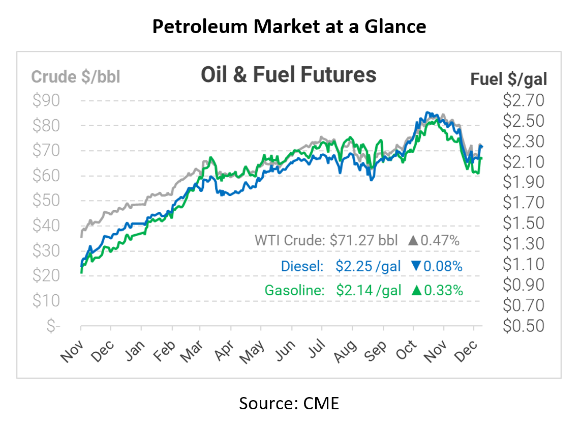 This morning, the oil complex is trading sideways as traders continue re-hashing old news, including the Omicron variant, China’s economy, and inflation. The biggest headline of the day is that the White House is not considering an oil export ban – much to the relief of oil markets.