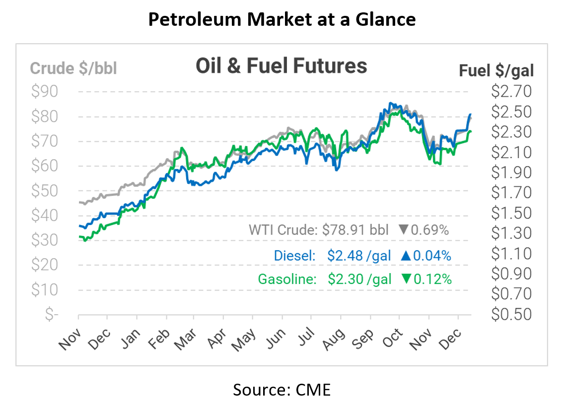 Fuel prices continue rising to new heights, with WTI crude nearing $80/bbl and diesel coming within a few pennies of $2.50 per gallon. The recent gains may feel a bit like the January Effect, which postulates that markets are re-buying positions sold in December for tax reasons. However, there are reasons to believe the rally is more than just a technical trading bounce.