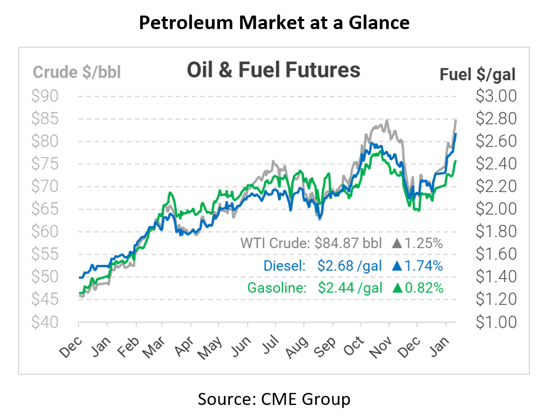 This morning crude oil prices reached seven-year highs as geological tensions in the Middle East begin to pick up. Yesterday, a drone attack in Abu Dhabi claimed the lives of three people, destroyed three fuel tankers, storage facilities, and injured many more. Yemen’s Houthi movement, a movement closely associated with Iranian dealings, has claimed responsibility for the attack.