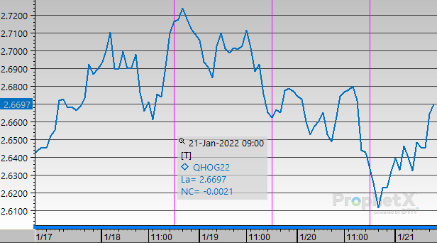 Diesel opened the week at $2.6345. Diesel followed the same trend as crude, climbing throughout the week before dipping on Friday. Today diesel opened at $2.6426, an increase of $0.0081 from Monday.