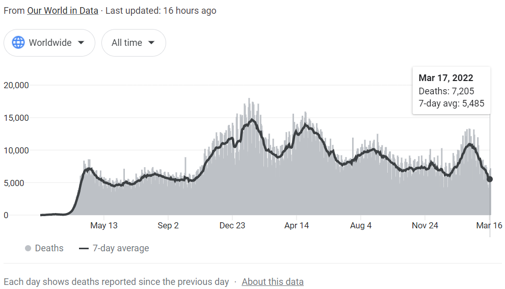 The most recent wave of COVID-19 cases was nearly 4x larger than the previous peaks, though Omicron was far less deadly than its predecessors. With the world largely returning to normal, the coronavirus faded from headlines for a while, but it’s slowly coming back once again. Global COVID-19 cases have stopped their downward progress, rising since early March. China’s current outbreak has reached as many as 2,000 new cases per day – the largest spike since the virus was originally uncovered in Wuhan. The EU is also reporting an uptick. In more positive new, the daily death toll of COVID-19 is at its lowest point since October 2020, which shows that the virus has become more prolific but less harmful.