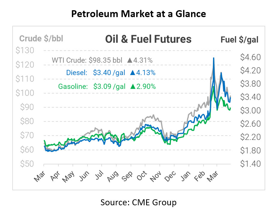 In alignment with the Environmental Protection Agency (EPA), Biden is expected to make this announcement sometime today. E15 Gasoline has a 15% ethanol blend, higher than the typical “up to 10% ethanol” blend contained in regular 87-octane gasoline. The EPA currently allows E15 sales during the fall/winter months, but restricts its sales in the summer because of tight fuel vapor requirements known as Reid Vapor Pressure, or RVP. Blends of E15 and higher may have slightly higher vapor levels during the summer, contributing to smog. However, in light of significantly higher prices, the Biden administration is waiving the requirement. Navigating this release can be tricky given that there must be emergency waivers released by the EPA, but it is expected the EPA’s decision is final and will be effective June 1 as the summer months and vacationing period start.