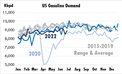 Fuel prices are falling steeply this morning as the market digests two weeks of EIA data, which delayed its reporting due to technical issues. Adding to market volatility, OPEC+ agreed to continue with their plan and raise production in August. The OPEC+ deal runs through the end of September, after which countries will technically be free to produce as much as they’d like. Of course, it’s unclear whether countries will be able to keep up with the August production hike, let alone further increases once the deal expires. Getting back to the EIA data, the recent report reveals important changes related to two stats: fuel demand and fuel inventories.