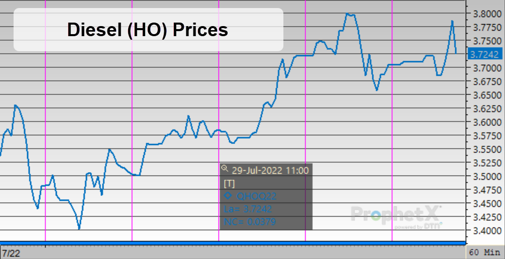 Fuel prices rallied this week, contrasting the gloomy economic news reported. Despite GDP contracting 0.9% in the second quarter, fuel prices are ending the week on a high note. Crude is back above $100/bbl – though just barely – and fuel prices are hitting their highest level in weeks. Particularly on the diesel front, prices are up nearly 30 cents since the beginning of the week, and gasoline has gained 50 cents since last week’s low.