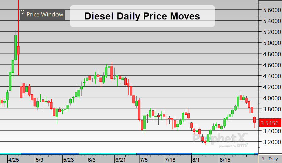 Adding to the diesel volatility, the EIA reported a surprise build for diesel inventories. Although the increase was a paltry 100,000 barrels, it wasn’t the draw that had been expected. Crude stocks fell 3.3 million barrels, while gasoline declined 1.2 million barrels.
