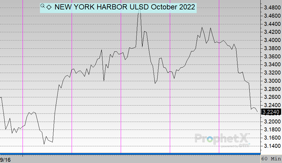 Diesel prices began the week low, and climbed as time progressed. On Monday, diesel opened at $3.1878, but gained over a dime before the end of the day. Prices continued in the $3.30-$3.40 range, peaking just shy of $3.50 on Wednesday. On Friday, diesel opened at $3.4112, a gain of 22.3 cents (+7%), though trading during the day has erased nearly all of those gains.