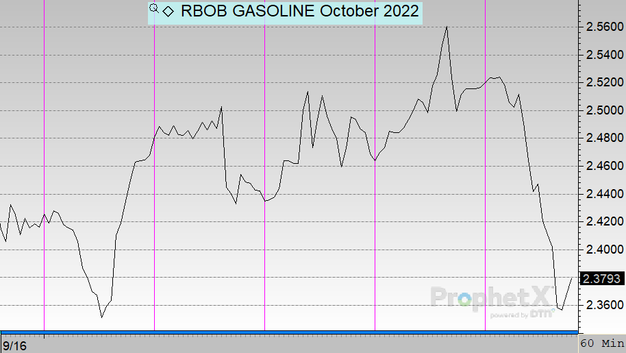 Like diesel, gasoline also saw an upward trajectory throughout most of the weeks, only to be undone on Friday. Monday’s opening price was $2.4109, and climbed to an opening price of $2.5258 by Friday. That represents a gain of 11.5 cents (+4.8%); however, those gains have turned to losses today.