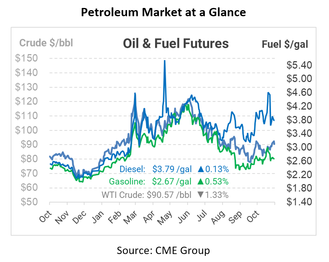 Overall, supplies are still tight, and we’re in for a winter with plenty of opportunity for volatility. Markets will be closely watching the weather, EU’s embargo, nat gas-to-oil switching for power generation, etc. to see how diesel demand will match up with supply. A lot is unknown, which is why it’s best to be prepared, work with a supplier with a strong portfolio of supply options and keep an eye on the key stats for more information on market direction.