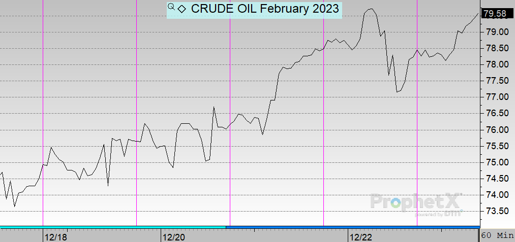 Crude oil began the week at $74.50, right in the middle of the $71-$79 range that has dominated prices for the past few weeks. Prices rose steadily through the week, peaking at $79.90 before dipping lower Thursday afternoon. On Friday morning, crude opened at $78.18, a gain of $3.68 (+4.9%).