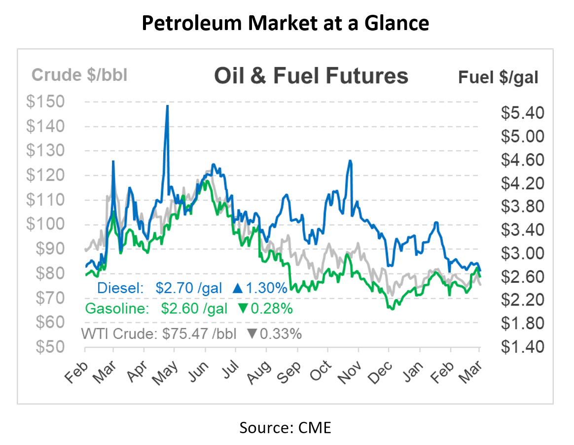 Meanwhile, despite sanctions, Russian supply still seems to be sneaking through to the market. European fuel markets are healthy thanks to stockpiling, and so far, there have not been significant concerns of fuel shortages. With the market adequately supplied, current refinery outages should not cause such significant price swings as those seen last year. Even more positively, many refinery outages affecting the market, such as in Colorado and Ohio, are expected to return to normal operations in April and May.