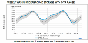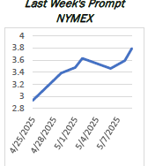 Natural gas prices closed out the week higher, breaking a multi-session losing streak, as warmer temperature forecasts offered fresh support. Traders pushed June futures to a four-week high on Friday after a stretch of muted price action, with optimism building that rising power sector demand could offset lingering bearish storage signals. Still, firm supply growth and technical resistance continue to temper the market’s upside potential. Last week, U.S. Natural Gas Futures settled at $3.795, up $0.165 or +4.55%. Friday’s rally was driven by updated forecasts from Xweather, which project above-normal temperatures in the eastern half of the U.S. through May 18. For more info go to https://tinyurl.com/y5drspa3