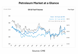 Crude prices opened the week at $67.32 and trended lower throughout the week. After a slight dip to $67.12 on Tuesday, prices declined more sharply to $65.49 on Wednesday and held near that level at $65.42 on Thursday. On Friday, prices edged up slightly to $66.15 but remained well below Monday’s opening level. Overall, crude fell $1.17 for the week, marking a 1.74% decrease.