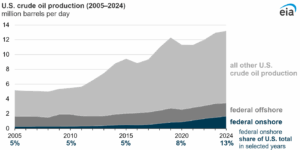 U.S. crude oil production on federal onshore lands is seeing record-setting momentum, with 2024 output reaching an all-time high of 1.7 Mbpd, a sixfold increase from 2008 levels, according to data from the U.S. Department of the Interior’s Office of Natural Resources Revenue and the EIA.