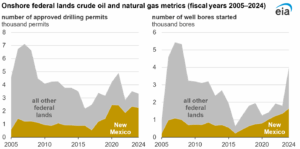 Much of this growth stems from federal acreage in New Mexico’s Permian Basin, where drilling activity has increased. Over the past several years, the state has led in drilling permits, lease approvals, and well-bore starts on federal land, trends that signal strong upstream investment and supply resilience in the region.